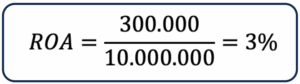 Ejemplo. Una empresa tiene Activos Totales de USD 10.000.000 y obtiene Utilidad Neta anual de USD 300.000, obtiene un ROA anual de 3%.