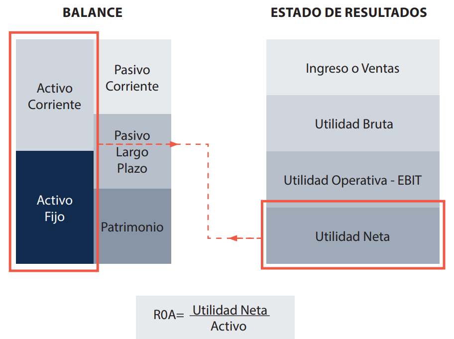 El cálculo del ROA se obtiene al dividir dos datos importantes, cada uno proveniente de un estado financiero diferente: