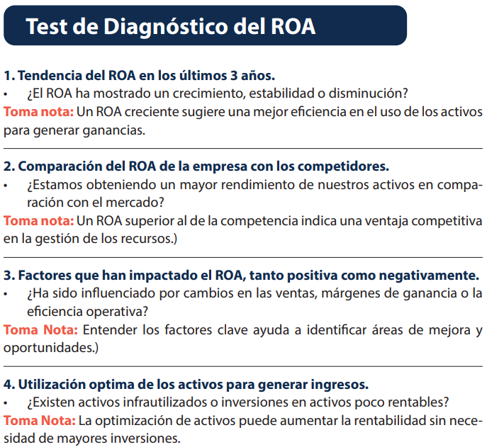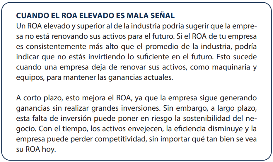 En resumen, el ROA mide la efectividad de tu empresa para aprovechar sus activos y generar utilidades. Un buen ROA significa que estás usando bien tus recursos, mientras que un ROA bajo podría ser una señal de que hay oportunidades para mejorar.